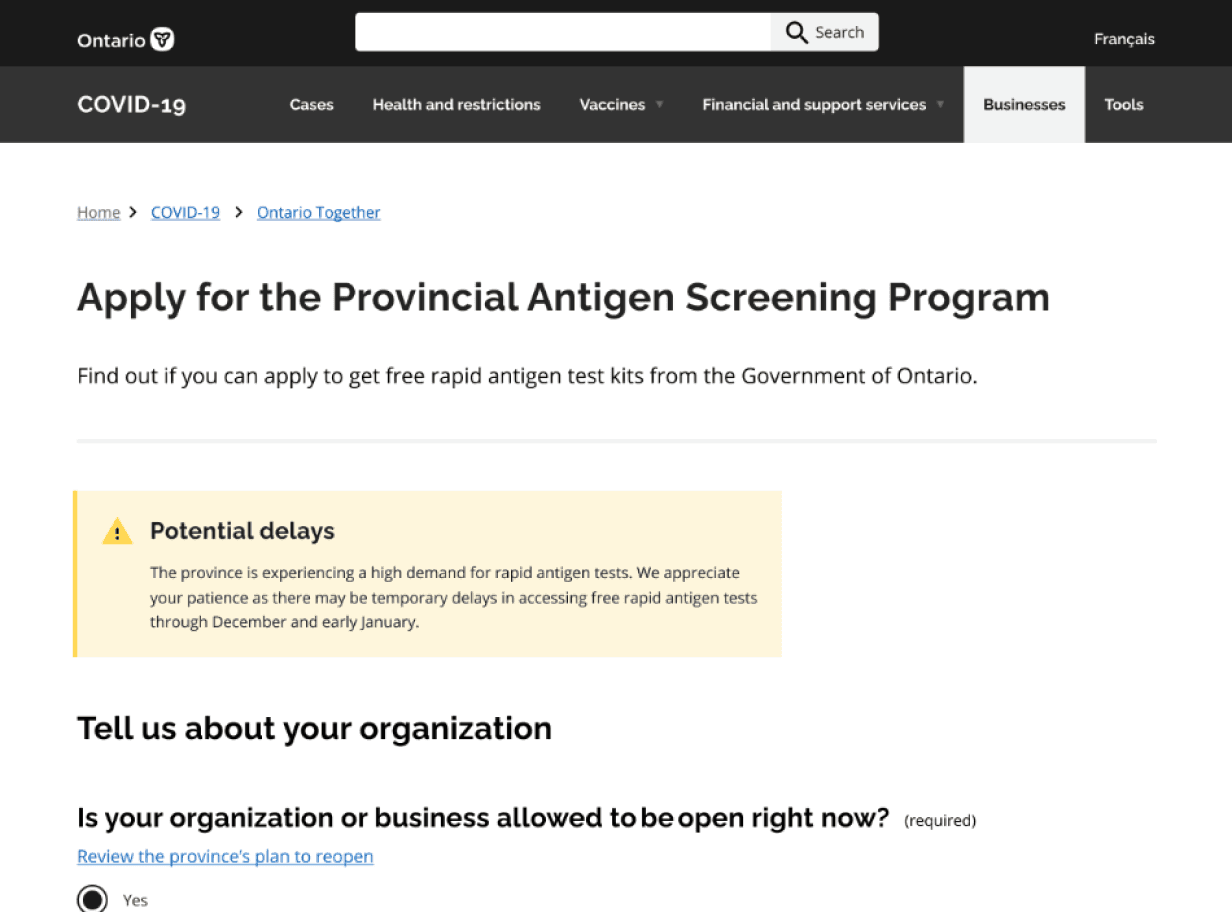 Every piece of content needed to be clear, actionable, and adapted to ongoing changes. As eligibility criteria shifted and supply chains fluctuated, users had to know exactly what to expect and what to do next.